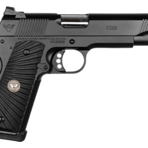 Wilson Combat CQBECP45 CQB Elite Compact Frame 45 ACP 7+1 4″ Stainless Match Grade Barrel, Black Serrated Carbon Steel Slide, Black Armor-Tuff Carbon Steel w/Beavertail, Black G10 Starburst Grip