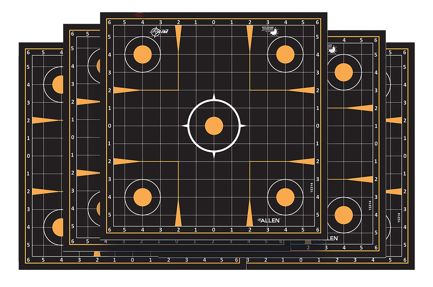 EZ-Aim 1531410 Splash Reactive Self-Adhesive Paper Black/Orange 12″x12″ Sight-In Grid 10 Pack
