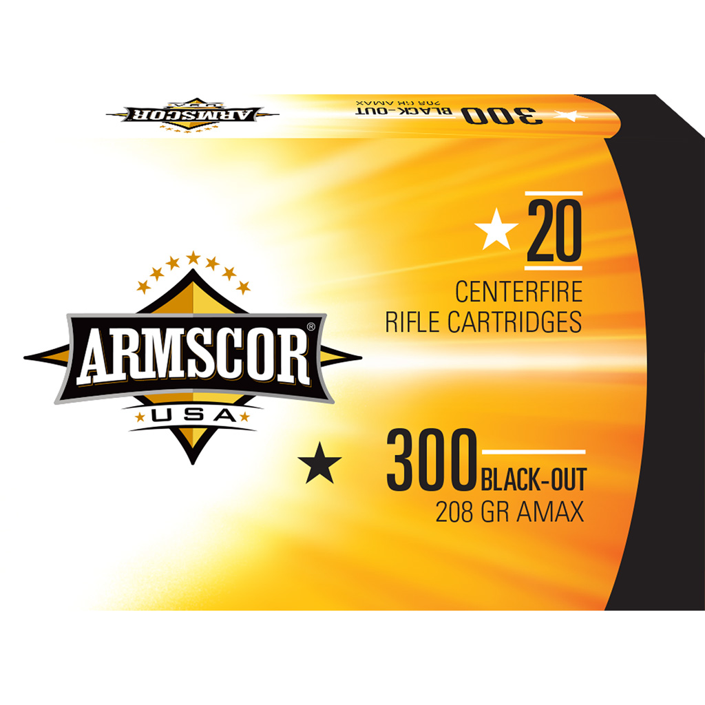 Armscor Target Rifle Ammo. 300 AAC Blackout 208 gr. AMAX 20 rd. Brass cased, boxer primed. 1150 FPS