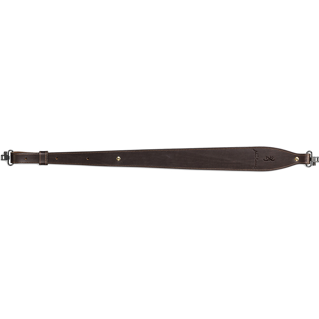 Top grain edge stitched leather with suede backing, embossed with John M. Browning’s signature, brass hardware, metal sling swivels included.