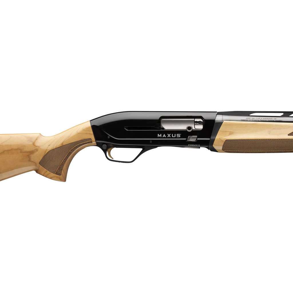The Browning Maxus II Hunter Maple Shotgun combines elegance and advanced engineering to deliver a premium hunting experience. Its stunning AAA-grade maple stock with a gloss finish is complemented by a matte black receiver and a perfectly tuned Power Drive Gas System that ensures smooth cycling and reduced recoil. This shotgun is equipped with an Inflex II recoil pad for added comfort, a fiber-optic front sight for precision aiming, and a Lightning Trigger with the fastest lock time among autoloaders. Designed for versatility, it comes with three Invector-Plus choke tubes and is ideal for hunting and sporting clays, offering superior performance in the field.