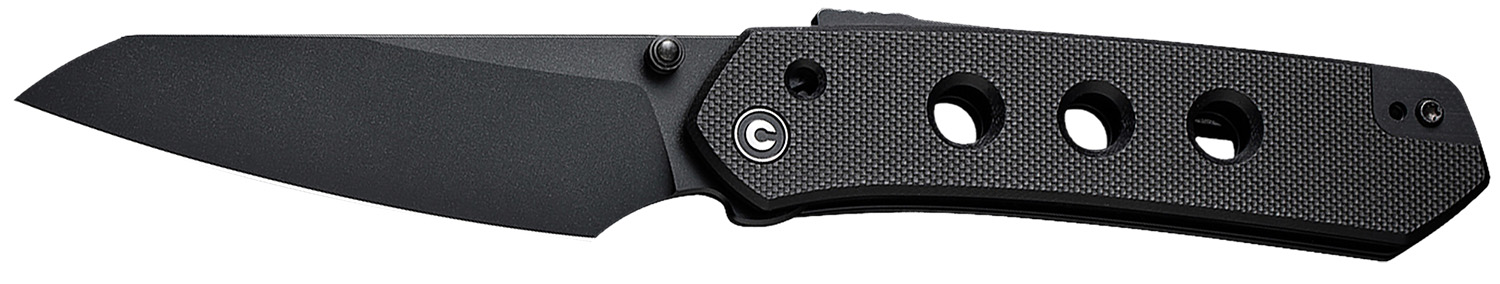 The Civivi Vision FG features a 3.54″ black Nitro-V steel blade, black handle with three holes, SuperLock close and thumb stud open. Includes pocket clip.