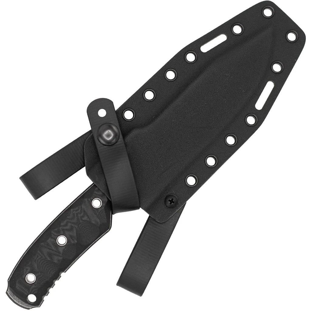 The CobraTec Recondo Knife is a compact full-tang fixed blade influenced by classic recon knife designs and built with modern materials for demanding use. Its 14C28N stainless steel blade features a saber grind and a non-sharpened swedge to support strength, penetration, and controlled cutting. A textured G-10 handle with jimping and an integrated guard provides a secure grip in varied conditions. The knife includes a reinforced hammer pommel and a form-fitted Kydex sheath designed for secure carry.