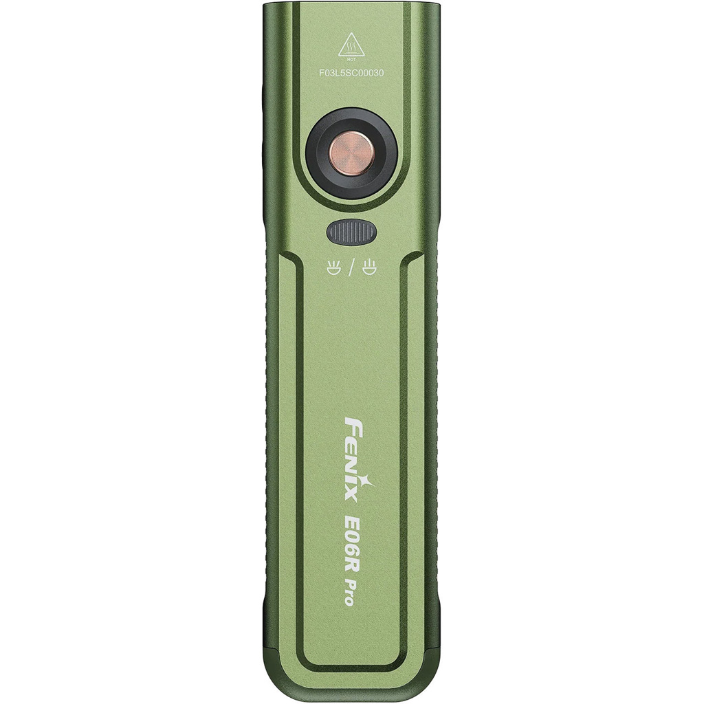 The Fenix E06R PRO is a flat-bodied EDC flashlight delivering up to 1600 lumens in Instant Turbo with combined spot and flood beams. It features white light, UV light, and a red laser, along with a 3D light ring offering five lighting effects. Powered by a built-in 1650mAh battery, it provides up to 111 hours of runtime and recharges via USB Type-C. Dual-switch control, battery level indication, and IP66-rated protection support dependable daily carry.