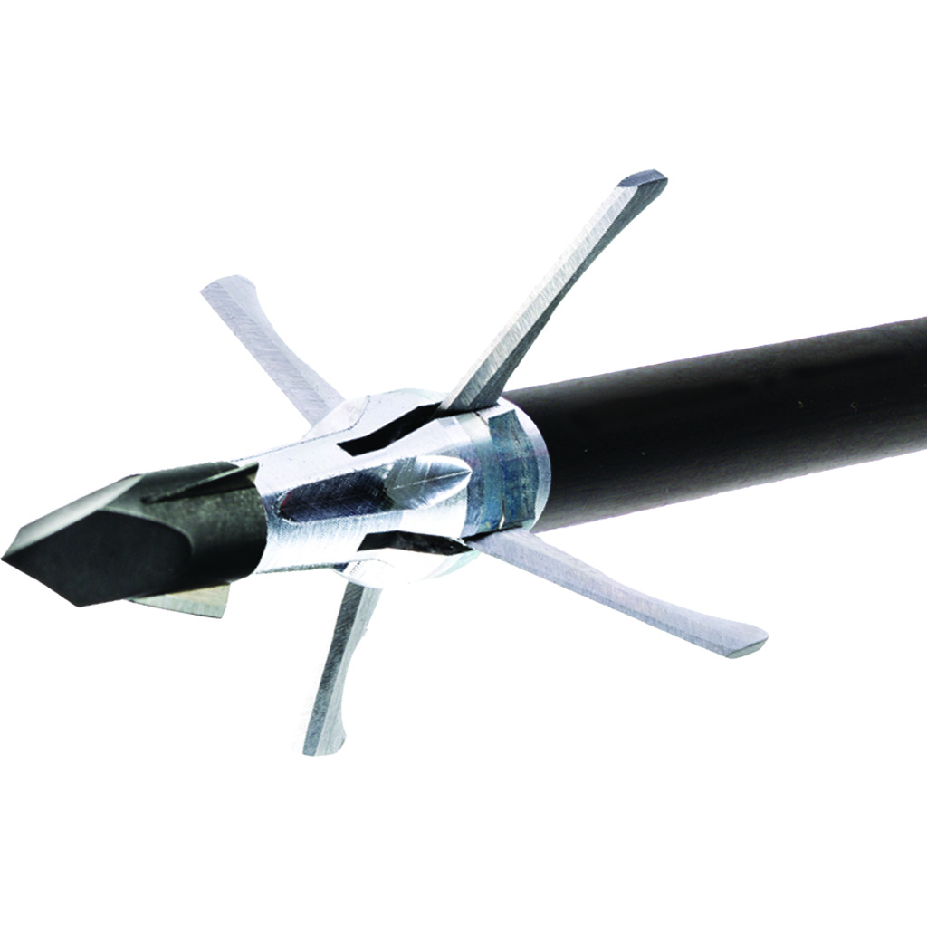 Led by the proven bone-busting Razortip, the Grim Reaper Mini Mag Razortip Mechanical Broadhead offers bowhunters a compact yet powerful design. This 4-blade expandable broadhead opens rapidly to create a large 1-1/4″ wound channel with its strong, razor-sharp .035 stainless blades. Featuring 3 mini razors locked in a hardened steel Trocar tip, it pulverizes heavy bone and slices like a scalpel for excellent durability and penetration.