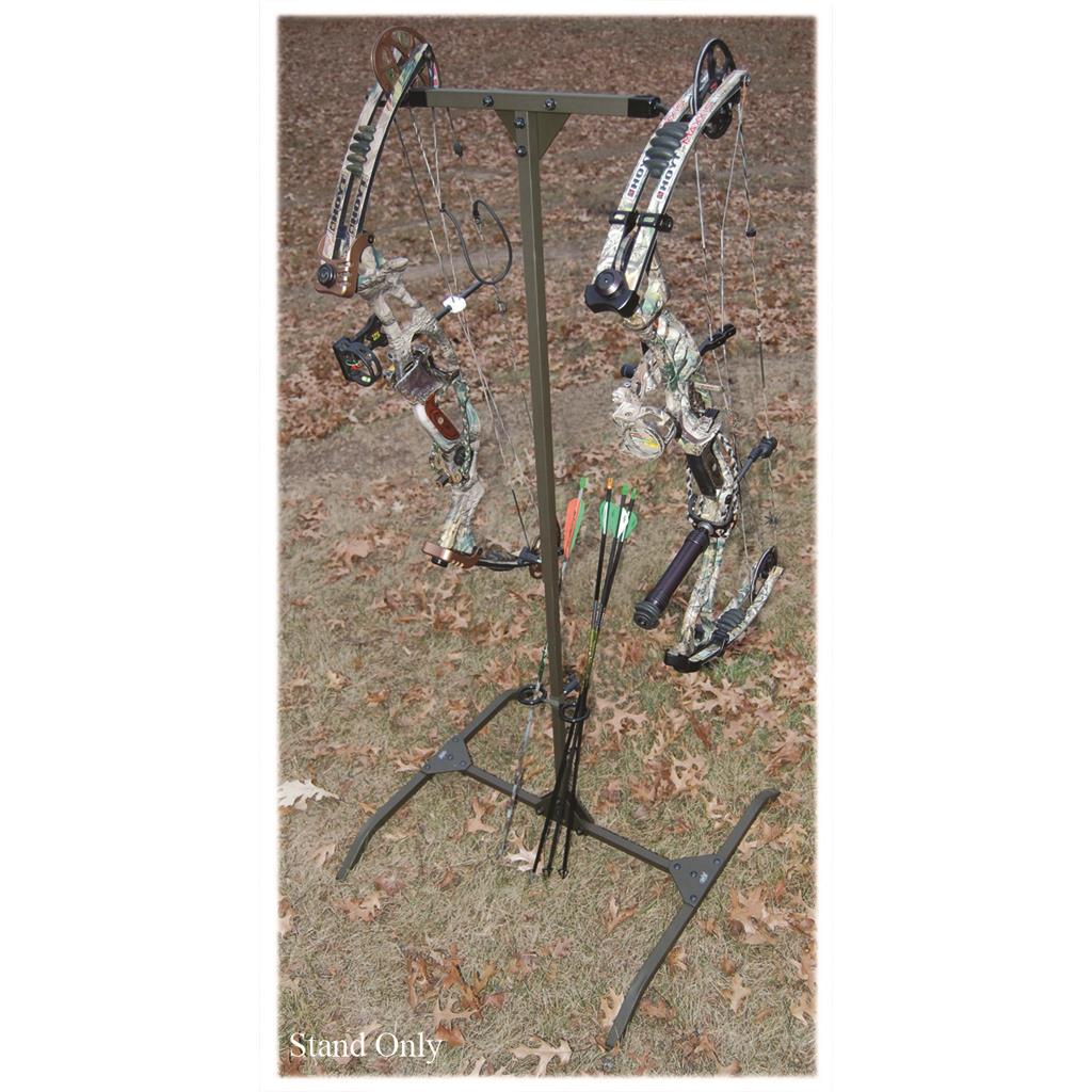 Sturdy, lightweight, mobile design is perfect for indoor or outdoor archery. It has a hanger on each end for one or two person use. It includes an adjustable arrow holding ring, telescopes and locks in the extended position and is long enough to work on the older or longer compound bows.