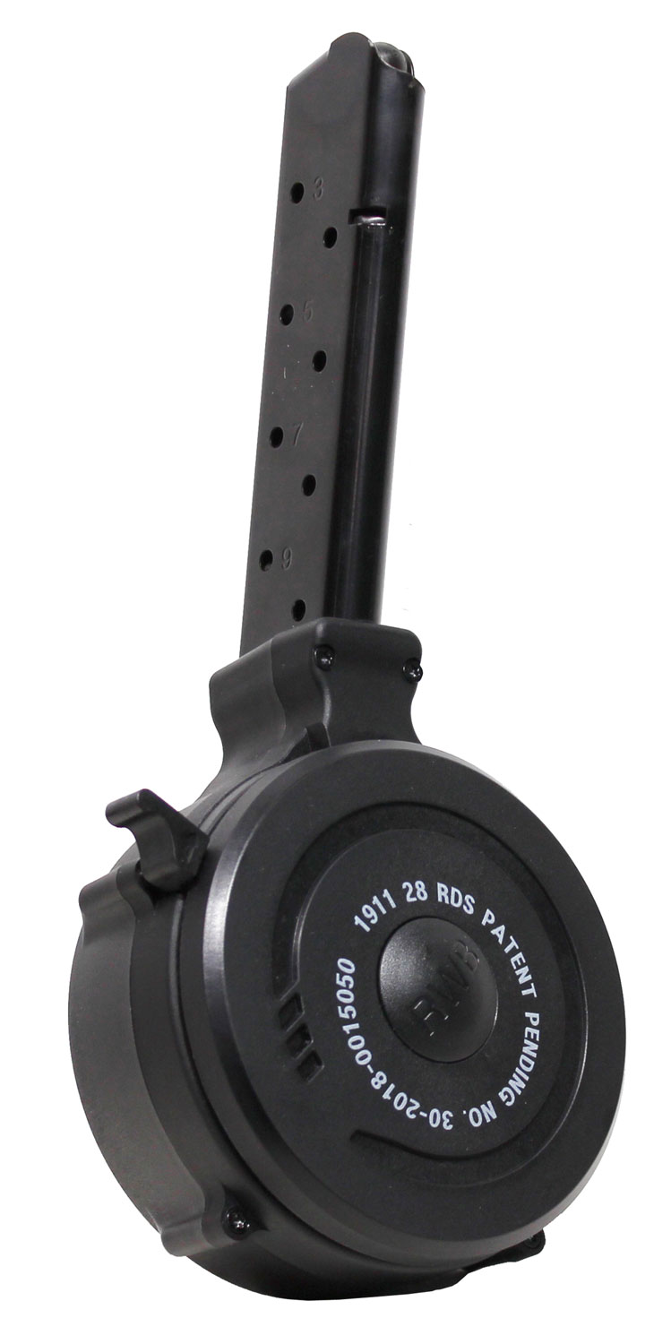 Iver Johnson Arms IJ1911DRUM45 1911 28rd 45 ACP Drum Black Metal w/Polymer Floor Plate