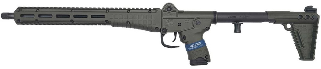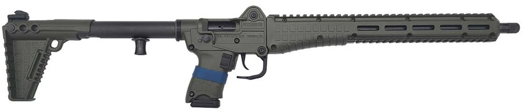 The KelTec SUB2000 in 9mm is a foldable semi-automatic carbine designed for convenience and compact storage. It features a 16.25-inch barrel, offering enhanced ballistic performance and accuracy typical of a carbine. Lightweight at 4.25 pounds, the SUB2000 is adjustable and can fold down to 16.25 x 7 inches, making it ideal for situations where space is limited. It accepts popular 9mm Glock magazines, is simple to operate with a straight blow-back system, and is easy to maintain. This makes the SUB2000 a practical choice for those needing a portable yet effective firearm.