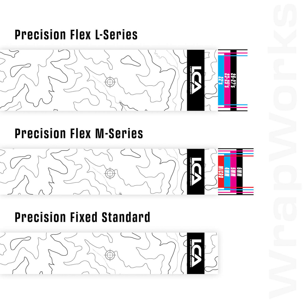 LCA arrow wraps are packaged in an easy-dispense box that feeds wraps one at a time to help keep them protected and organized. The wraps use a thin, durable material with strong adhesion designed to hold in wet and cold conditions. A UV-cured finish supports sharp detail, vibrant color, and fade-resistant performance. Offered in multiple sizes, Flex options include reference lines for trimming to fit multiple arrow diameters. L-Series offer a max diameter up to .445″ (27’s), M-Series offer a Max OD fit to .334″ (6mm), Standard offer a Max OD to .300″ (5mm)