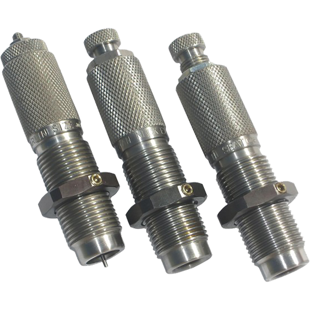 The Lyman Rifle 3 Piece Die Set consists of a full length resizing die with decapping stem and neck expanding button and a bullet seating die. Each rifle sizing die is vented to prevent trapped air that can damage cartridge cases, polished, heat treated for toughness and then receives a final micro-finish polish for extra smoothness. These die sets are designed for loading cast bullets in the bottlenecked rifle case due to inclusion of the neck expanding die.