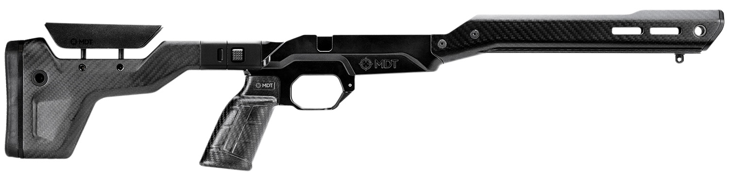 MDT Chassis Systems were designed for sports and tactical shooting. However over the years we found that our rifle chassis were often used in hunting, especially our lighter chassis such as our LSS Chassis system. But we had never purpose-built a chassis system solely for hunting, until now.. The MDT HNT26 Chassis System is our first truly purpose built hunting rifle chassis. This rifle stock provides you with all of the usual benefits that you expect from a chassis system such as v-block bedding, LOP and comb adjustment, AICS magazine compatibility etc, but weighs in starting at a mere 26oz. The MDT HNT26 Chassis is constructed of a magnesium alloy rifle stock/base, with a carbon fiber forend, a carbon fiber pistol grip and a foam filled carbon fiber buttstock. This model has the ARCA forend.