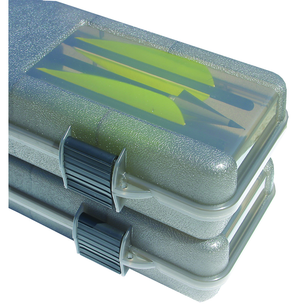 For transporting and storing crossbow bolts. Protects a dozen bolts up to 23″ in total length. Bolts are separated with notched foam padding and secured with snap-over latches and double padlock tabs.