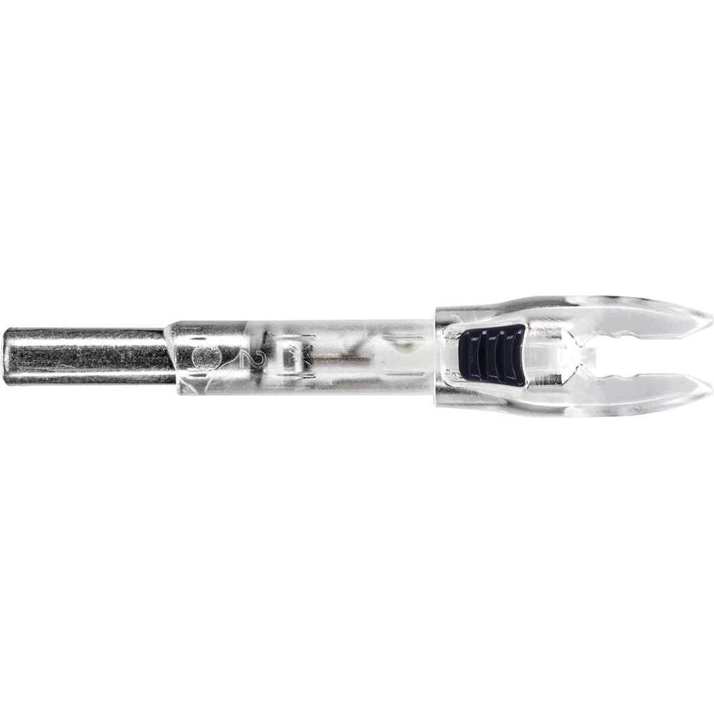 The Nockturnal Shift Universal Easy Off Nock System with FIT Technology sets a new standard in lighted nock design. These lighted nocks offer unparalleled simplicity and reliability, featuring an external on/off switch that allows for effortless control. Just slide the switch to turn off the ultra-bright, string-activated LED light. With a durable polycarbonate casing, these nocks are both waterproof and shockproof, ensuring they withstand the toughest conditions. Boasting over 20 hours of battery life, the Nockturnal Shift FIT lighted nocks are designed to last. The patented, piston-driven contact linear switch activates the light immediately upon string release, providing instant illumination.