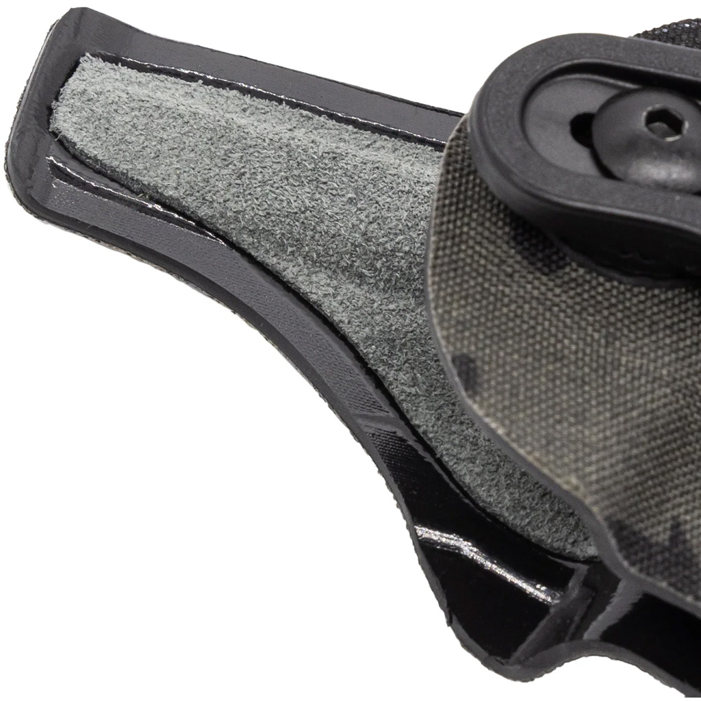 The Safariland Species IWB Holster is a minimalist inside-the-waistband (IWB) holster designed for discreet concealed carry while maintaining comfort and quick accessibility. Constructed from SafariLaminate thermal-molded material, it offers exceptional durability and longevity. The suede lining enhances firearm fit and protects the finish, while an integrated passive trigger guard retention system ensures a secure yet natural draw. With an adjustable tension device and fully cantable, vertically adjustable mounting clip, users can customize the fit and carry angle for maximum comfort. Optic-compatible, this holster accommodates Romeo Zero, RMR CC, Shield RMS, Holosun 407K/507K, and similar red dot sights. Right-hand configuration only.
