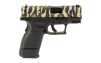 The XD set the bar for polymer pistols. In 2001, Springfield Armory redefined the industry standard for superior ergonomic comfort, ease of operation, features and performance in one fell swoop with the XD The grip safety, Ultra Safety Assurance (USA) Action Trigger System, and the firing pin block safety combine to make this an undeniably safe defensive tool. This model has a custom Tiger Stripe Camo Cerakote by Shark Coast.