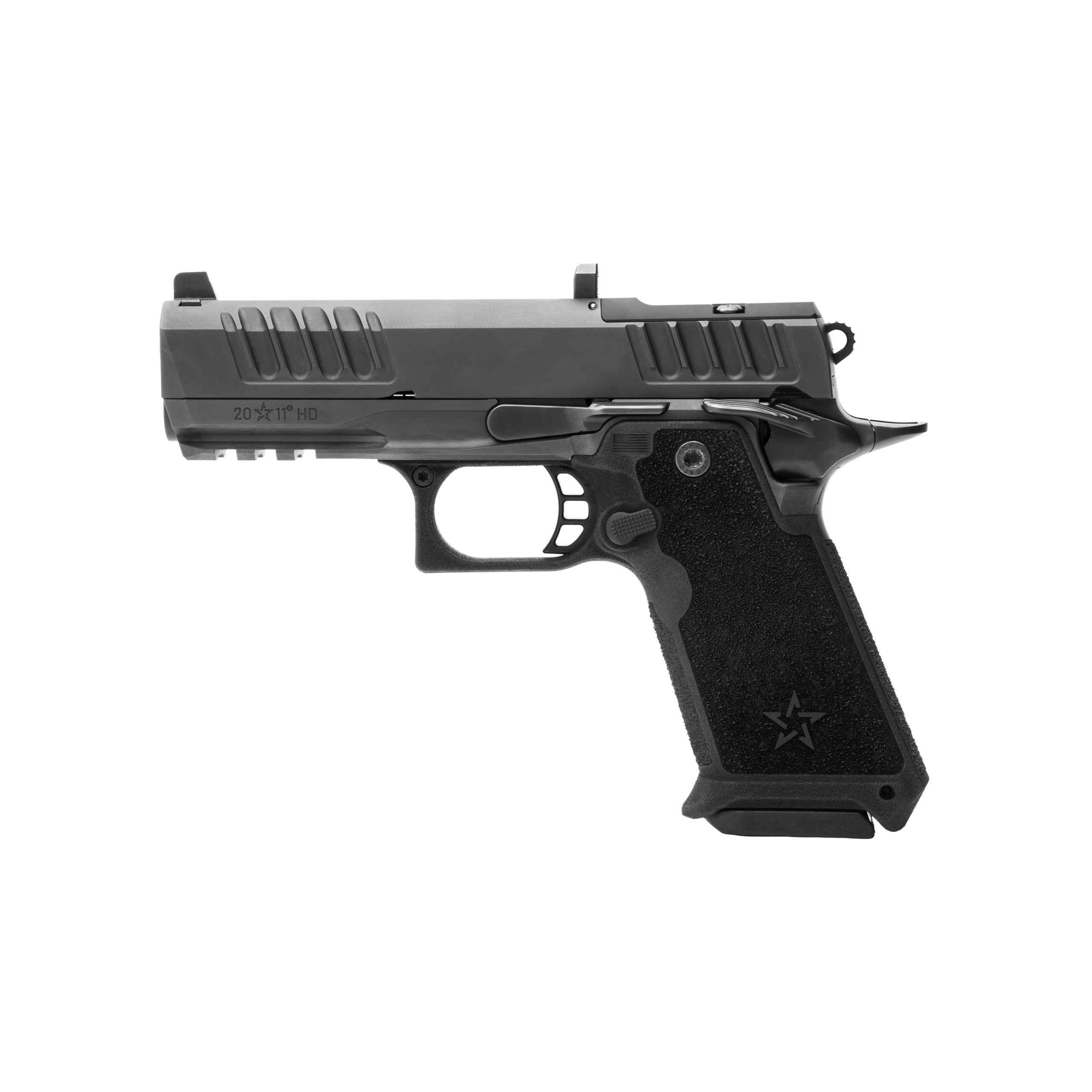 The Staccato HD P4 is a full-size 9mm duty pistol built on the next-generation HD 2011 platform. With a 4-inch barrel, the P4 delivers exceptional accuracy and reliability in a combat-ready package. Features tool-less disassembly, ambidextrous safety, and Staccato’s patented modular grip system.