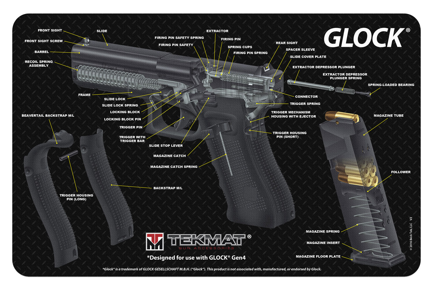 The 17″ TekMats are large enough to handle a fully disassembled handgun with room to spare for tools and accessories. The 1/8″ padding on these mats offers extra protection from any rough handling or drops while working on your firearm. The ultra-soft, oil and water-resistant surface helps protect your firearm from scratches while the diagrams and illustrations help with cleaning and disassembly.