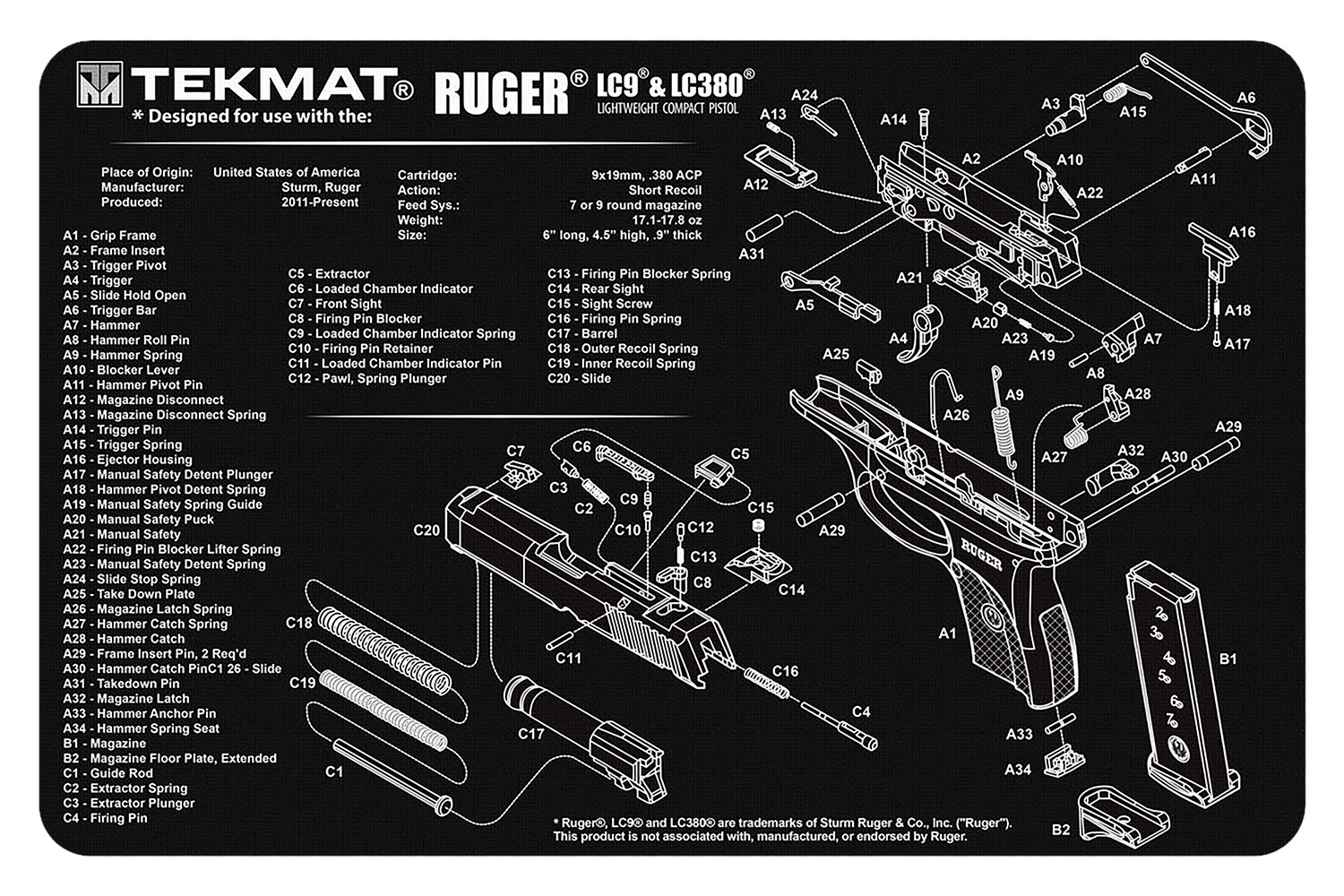 TekMat TEKR17RUGERLC9 Ruger LC9 Cleaning Mat Black/White Rubber 11″x17″ Ruger LC9 Parts Diagram
