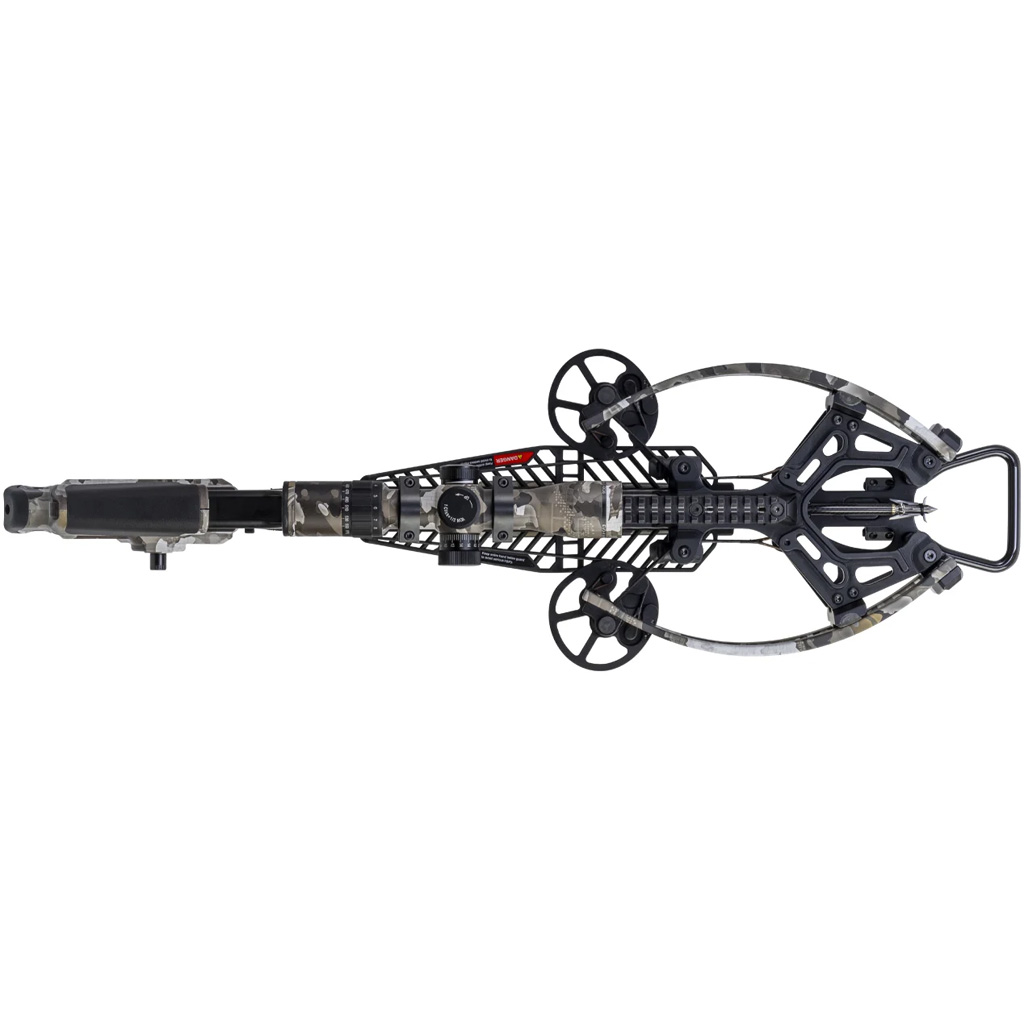 The TX Ultra 29.5 is a forward-draw crossbow measuring 29.5 inches long and 6.5 inches wide, with a rated speed of 460 fps. It features Twin-Riser Technology, a TriggerTech trigger, and an AR-style ambidextrous thumb safety, along with a rail-less ZERO-Trac barrel and an ACU-Lock Scope Bridge. Zero-Torsion Technology combines 0.315-inch axles and X-Wide limbs to reduce torsional movement for consistent shot-to-shot performance, with a claimed capability of 3-inch groups at 100 yards. The package includes ACUslide MAXX for cocking and de-cocking, a 100-yard EVO-X Marksman Elite Scope, a 3-pack of ACU-X 20 carbon arrows, plus an integrated string stop, quiver, bow hanger, and bubble level.
