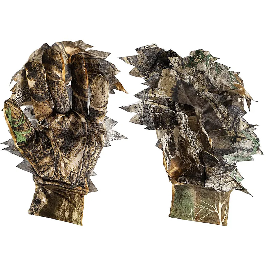 These 3D Leafy Gloves are designed to deliver superior concealment and comfort while maintaining full functionality in the field. Built on a lightweight, breathable, stretchy no-see-um mesh liner, they provide a snug one-size-fits-all fit without adding bulk. The soft, large dynamic leaves feature deep cuts and two-sided printing to enhance depth and movement, offering realistic 3D camouflage that won’t snag or collect debris like traditional ghillie material. Finished with rubberized palm grips for a secure hold, these gloves keep you hidden and in control during your hunt.