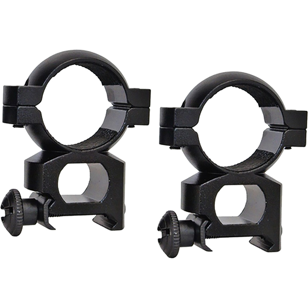 Aluminum Scope Rings, fits weaver style bases. 1 inch in diameter, Quick Peep height, top/bottom style, matte black finish.