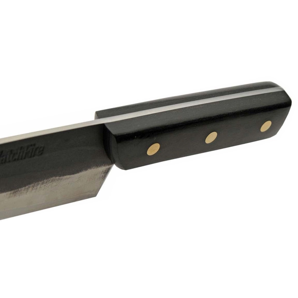 The Watchfire Stozer Butcher Knife with a Pakkawood handle is a professional-grade kitchen knife that delivers exceptional performance and durability for both home and commercial use. Featuring a hand-forged 7-inch 7Cr17MoV stainless steel butcher blade with a plain edge, this knife is designed to handle tough cutting tasks with precision. The full tang construction ensures strength and stability, while the Pakkawood handle, complete with flush rivets, provides a comfortable and secure grip. The knife includes a canvas blade cover sheath for safe storage and is dishwasher safe for easy cleaning. With an overall length of 11.5 inches and a blade thickness of 0.11 inches, this knife is the perfect addition to any kitchen.
