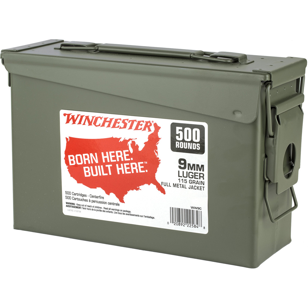 Winchester USA Pistol Ammo 9mm Luger 115 gr. FMJ 500 rd.
