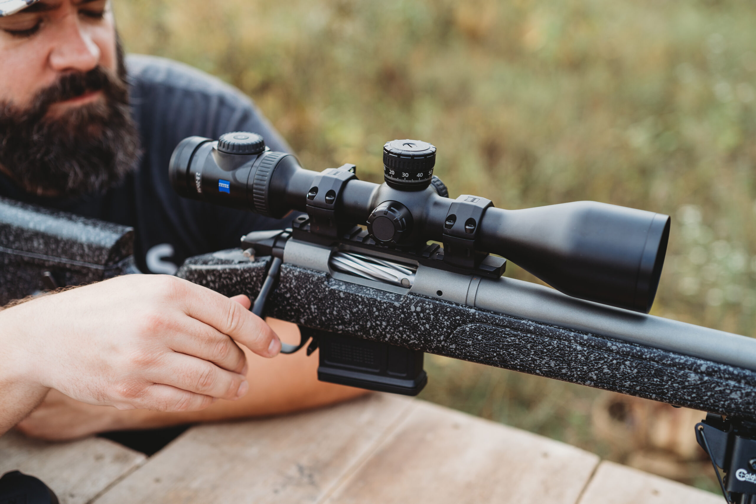 The Pinnacle of Optical Performance. The V8 1.8-14×50 is a compact model with a wide range of possible uses and maximum accuracy at longer distances. Thanks to the large field of view, the 14x zoom, outstanding optical quality, and its low weight, the ZEISS V8 1.8-14×50 is an ideal choice for any hunting situation. The V8 1.8-14×50 features an external elevation turret with BDC (ASV) with ballistic rings .33 MOA turret adjustments, side parallax adjustment, and illuminated reticle #60. The distinctly innovative optics utilize exotic glass types, from SCHOTT glass, consisting of multiple FL (fluoride) and HT (high-transmission) lens elements. The optical system yields an impressively bright image, with a guaranteed light transmission value of 92%. The exterior lenses are then protected from environmental abuse with ZEISS’ LotuTec protective lens coatings. An immediate advantage of these designs is the extra-large and extra-friendly eye box that allows for faster target acquisition. The specialized optics are housed in a modern and compact 30 mm main tube design. The opto-mechanical system has been torture tested to endure over 800 cycles of impact testing at 1,000 g-force and final tested to withstand multiple impact cycles at 1,500 g-force. V8 scopes are waterproof to 13 feet for up to two hours – further confirming that ZEISS quality standards are achieved.